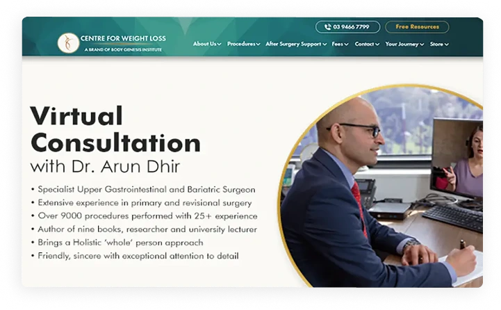 At Centre for Weight Loss, we provide a comprehensive range of weight loss surgery options in Melbourne, including Gastric Sleeve Surgery, Gastric Bypass Surgery, Mini Gastric Bypass Surgery, Gastric Banding (Lap Band), and Revision Surgerieswhere each services are all tailored to your health and goals.