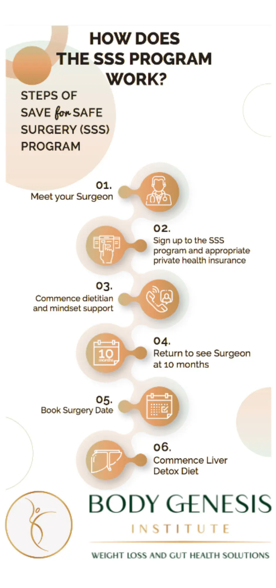 SSS program was designed having your safety in mind first. The program commences when you take out a valid private health insurance that covers you for weight loss surgery in a Private Hospital. The program supports your mindset and physical fitness during the waiting period, generally 12 months, such that you optimise your chances for long term success after weight loss surgery.